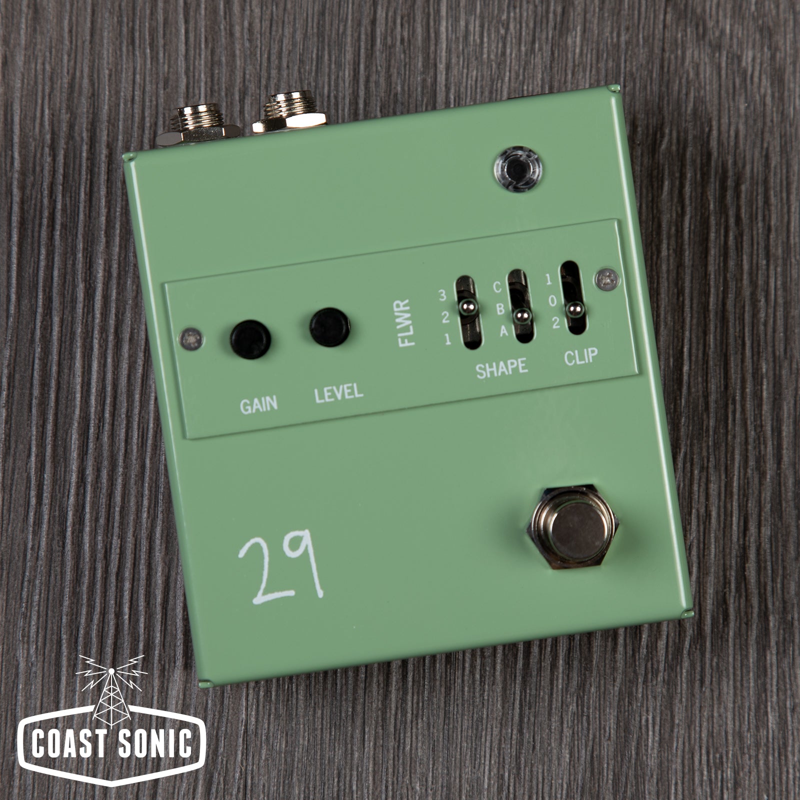 FLWR is, I guess, an overdrive! It makes gain, about 45dB, and can get up into fuzz territory at max settings. It’s designed to help you find your own breakup point, where pushing with the guitar breaks up nice and amp-y, but pulling back cleans up. The “SHAPE” controls affect the first gain stage, while the “GAIN” control affects the second gain stage. The clipping diodes are a modular sub-assembly, you can experiment and find your own magic arrangement. FLWR has a medium input impedance, so plugging right in will be a little warmer than when FLWR is following an input driver like EUNA. The output impedance is slightly higher to allow for interactions with other pedals. The WHATEVER power port accepts 7.5 to 35 volts of AC or DC in either polarity. FLWR is True-Bypass when switched off.