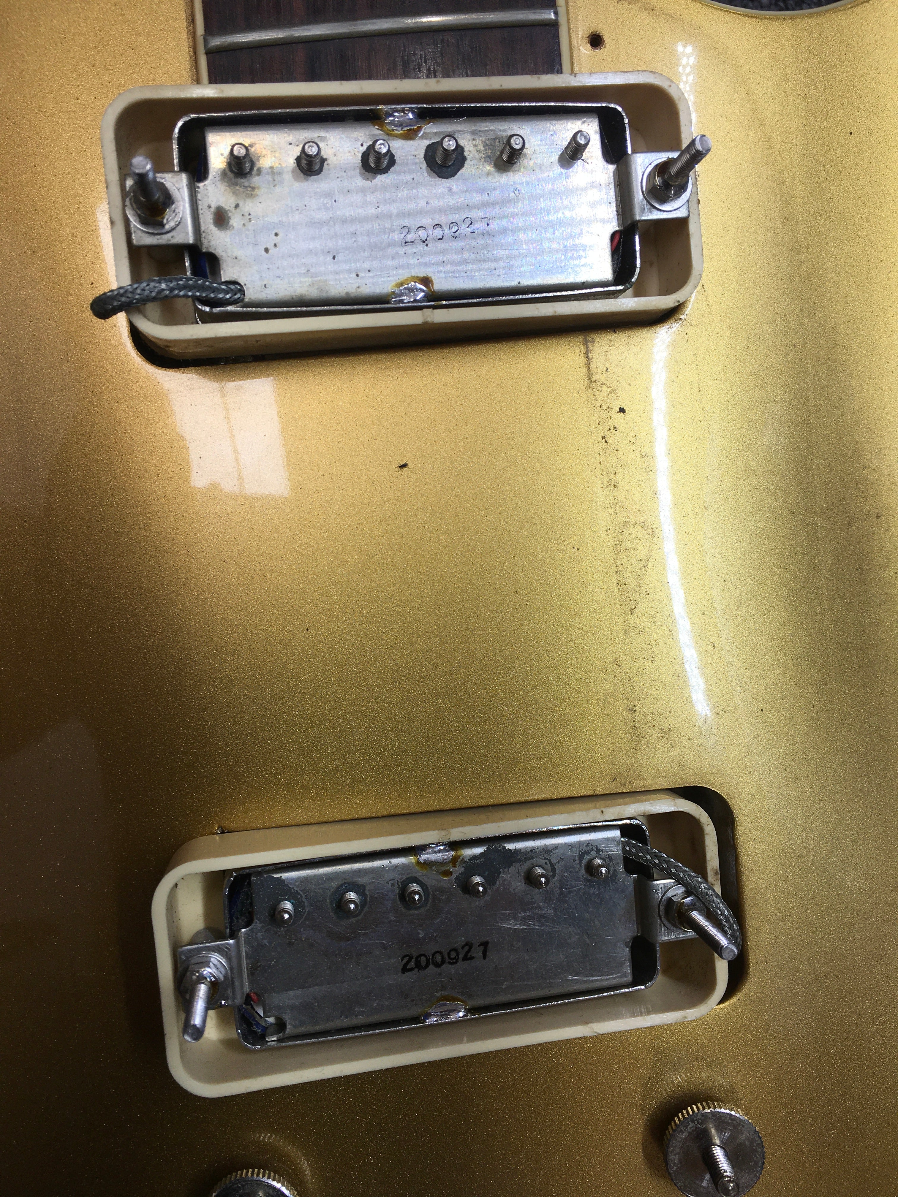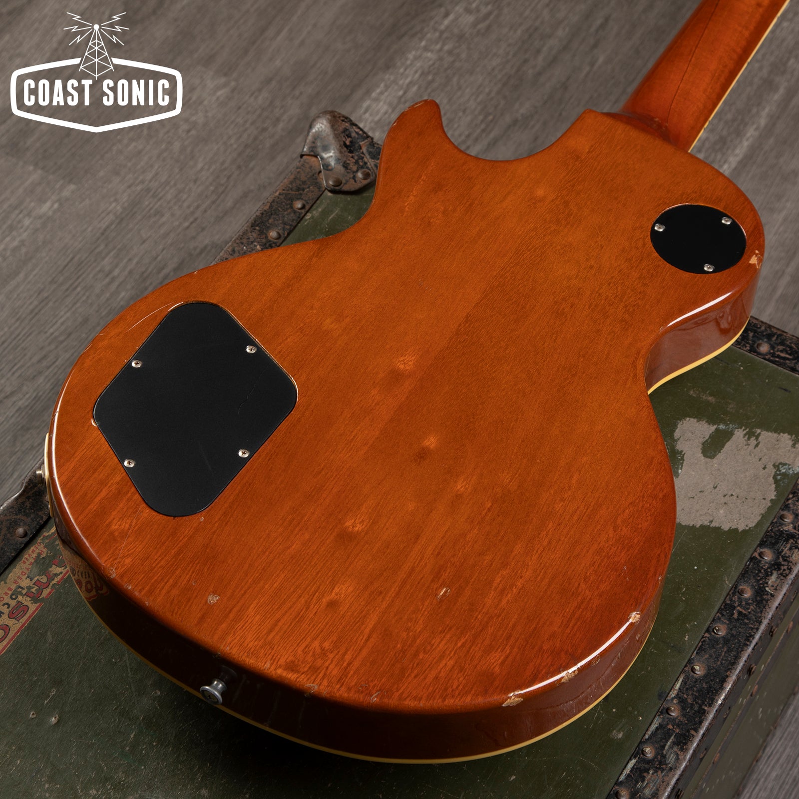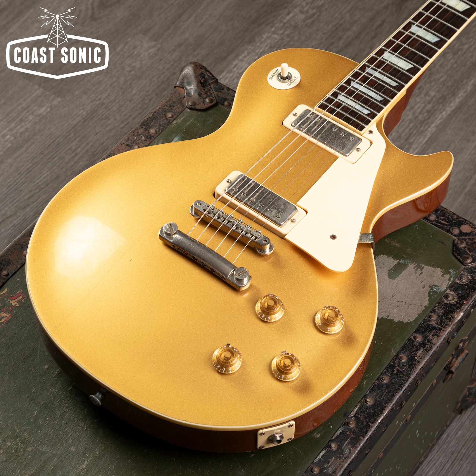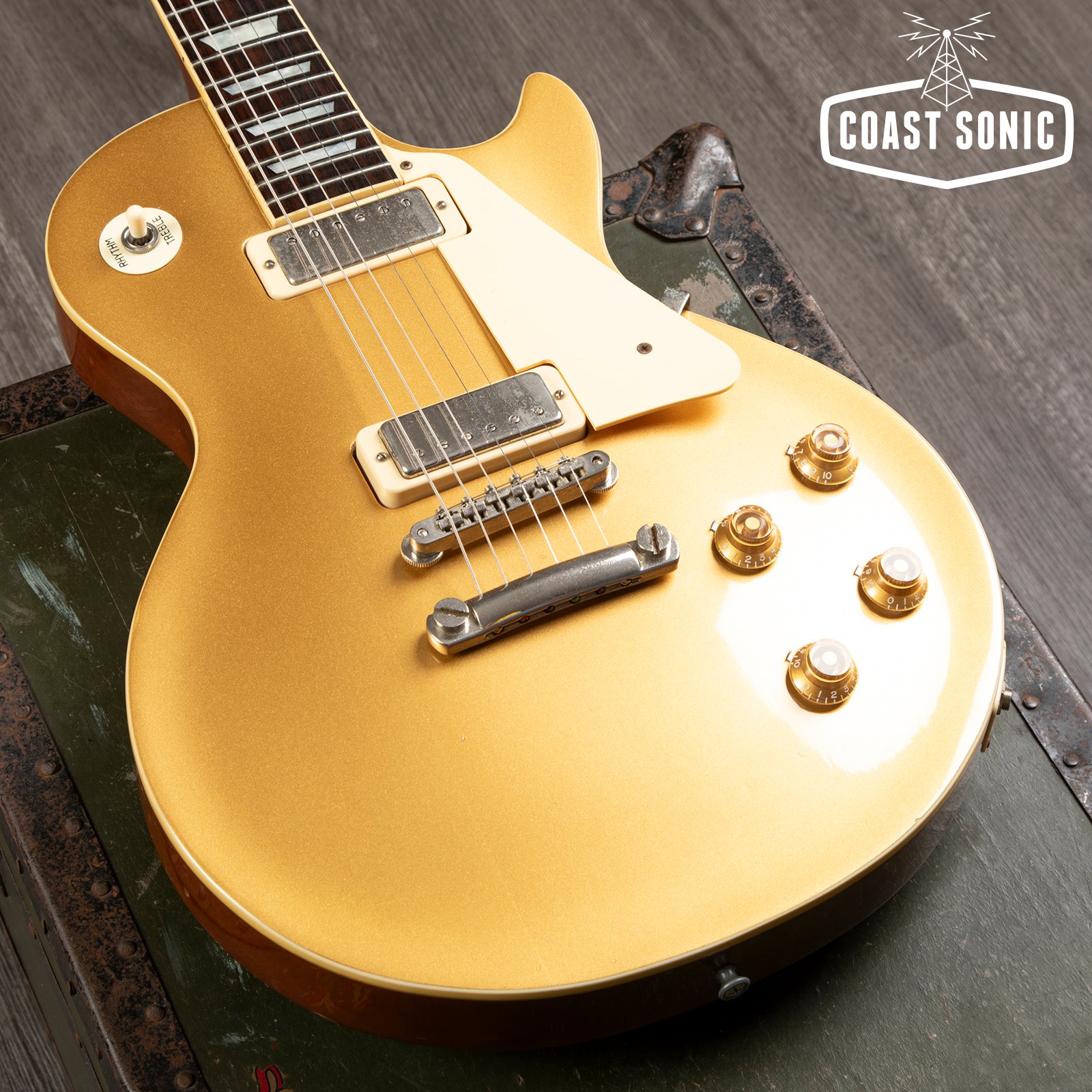 This one is in good clean condition for a 44 year old instrument; shows some dings/marks but no major damage. Headstock has edge marks and a small chip on one of the wings, back of neck has a few nicks and marks but nothing major, fretboard and frets are both excellent. Goldtop is very clean with only light scuffing/playwear, rear of body has some dings at the edges and some light buckle worming. Please study photos for full details. Overall a really great feeling/playing version of the 70s classic LP but with a grwat build quality.