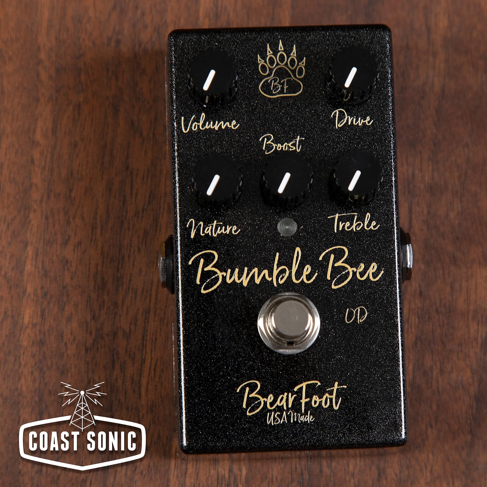 DESCRIPTION Is there gas in the car? With a name like 'Bumble Bee' you can probably guess some of the target range for this new multi stage OD. Mr. 335 is known for his wonderful Dumble tones, but that famous 'Kid' solo was actually just his 335 into his Tweed Deluxe. So we started with the dynamic, tweedish Honey Bee sound and gave it a little more gas and clarity and a pre dirt booster with that sweet upper mid bark to push the Bumble Bee into singing, sweet, tight solo land. The Nature control is neutral at noon. To the left, pre drive lows are added to give it that bloated, churning tone of a little tweed combo being pushed into distortion and compression. To the right, the Nature control adjusts the highs and at full clockwise is removed from the circuit and the Bee gets more headroom and harmonics (be sure and try this). The Drive control comes after the Nature and Boost controls so is interactive with them depending on how you stack the gain stages. The Treble Control at about 9 o'clock is the classic Honey Bee tone and you can 'lift the blanket' from there. The Boost control is a pre dirt boost with a tailored upper mid push to dial in those singing barking lead tones.