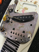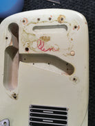 Here for your consideration is a 1956 Fender/White Studio Deluxe Lap Steel in good condition w/Legs and original Case! A super cool piece of Fender history and a killer Lap Steel! shows some wear and finish chips that you would expect from a 70 year old instrument. No major damage. Has the original plastic bridge cover however the posts that go into the slots have broken off so it does not function as is and would need to be repaired for it to work properly, but it is included. Currently set up in open D tuning. Hardware is in very good working condition. The White logo has mostly peeled off but some of it still remains. Electronics function perfectly and features a single coil pickup similar in appearance to a mustang style pickup. A super fun and cool piece of Fender history. Has been fully inspected and set up by our tech and ready for a new home. Includes legs and original hard case.