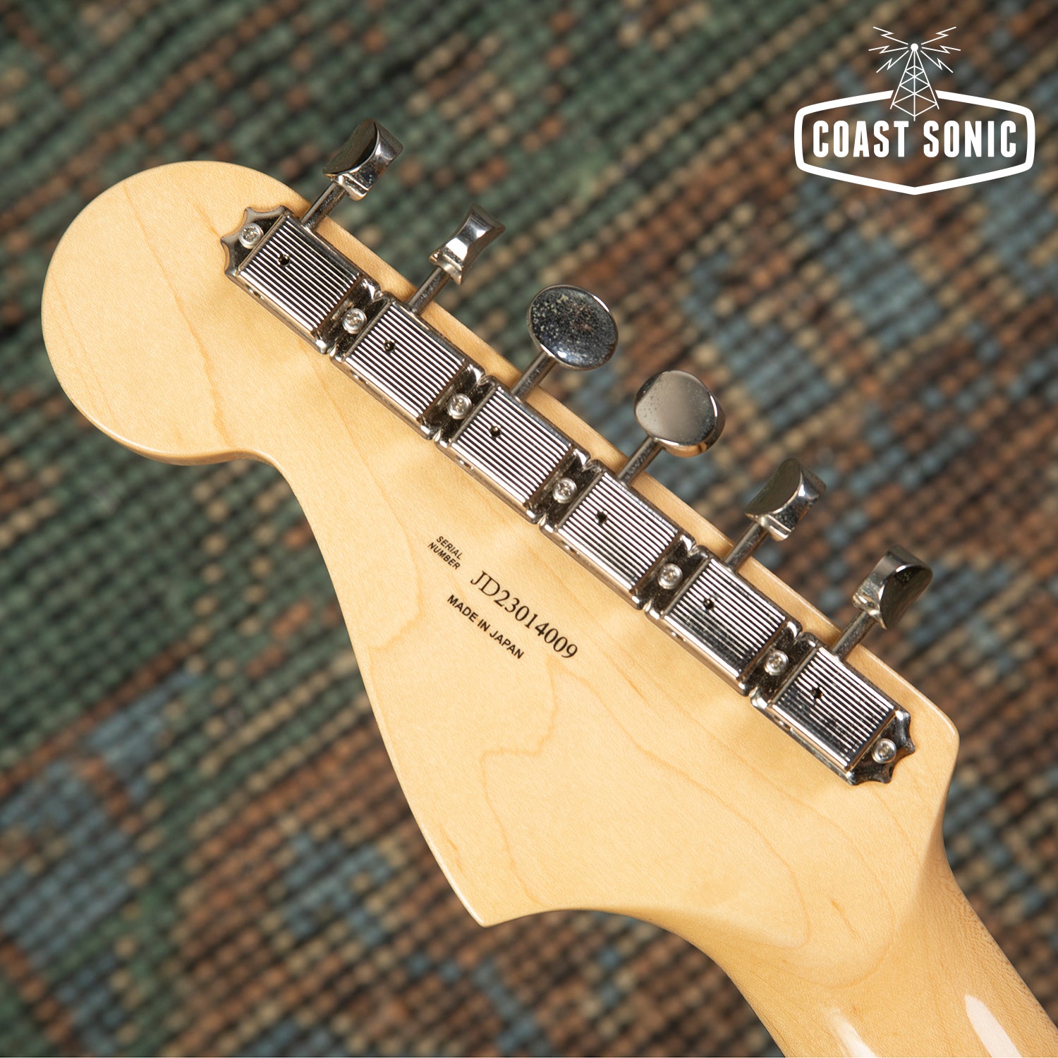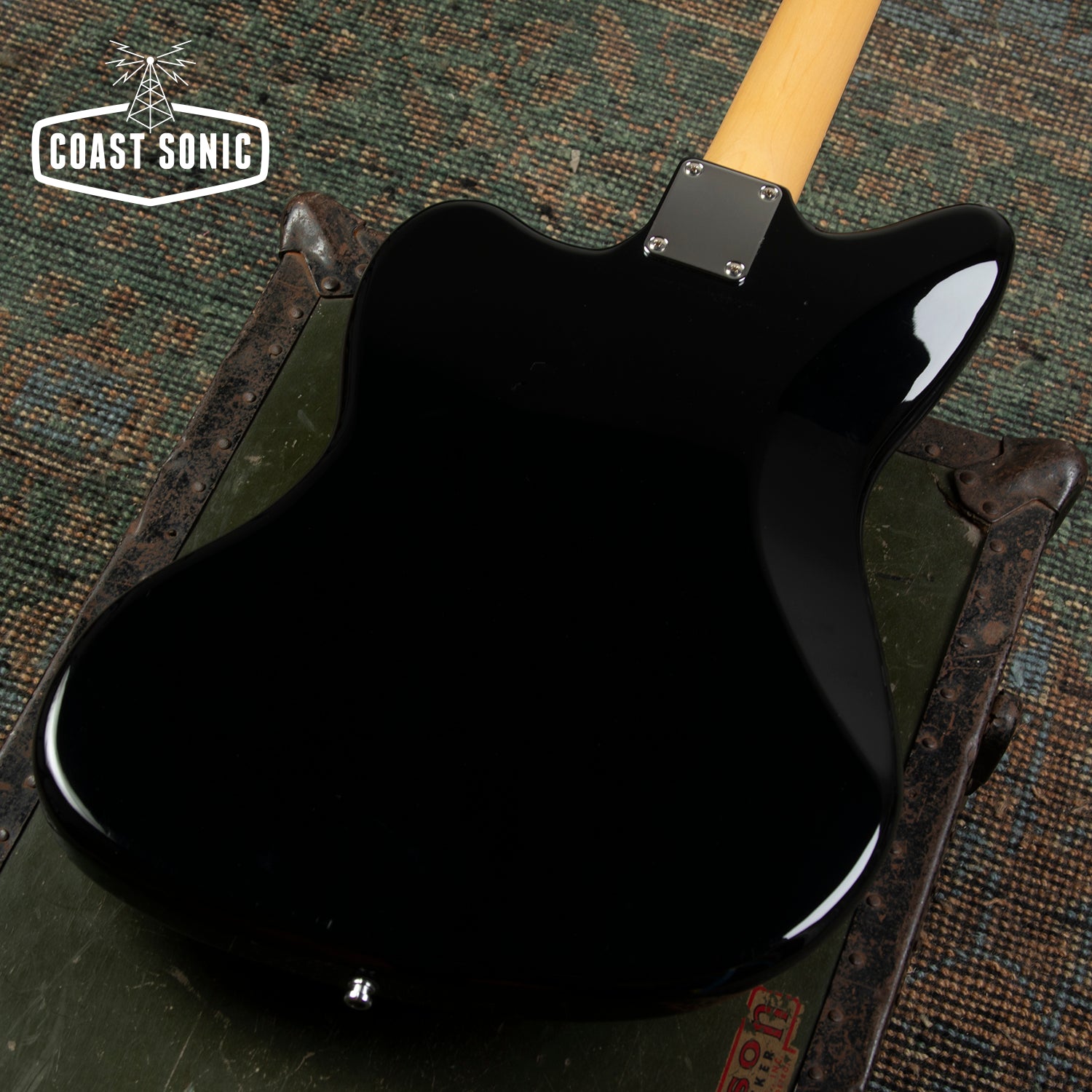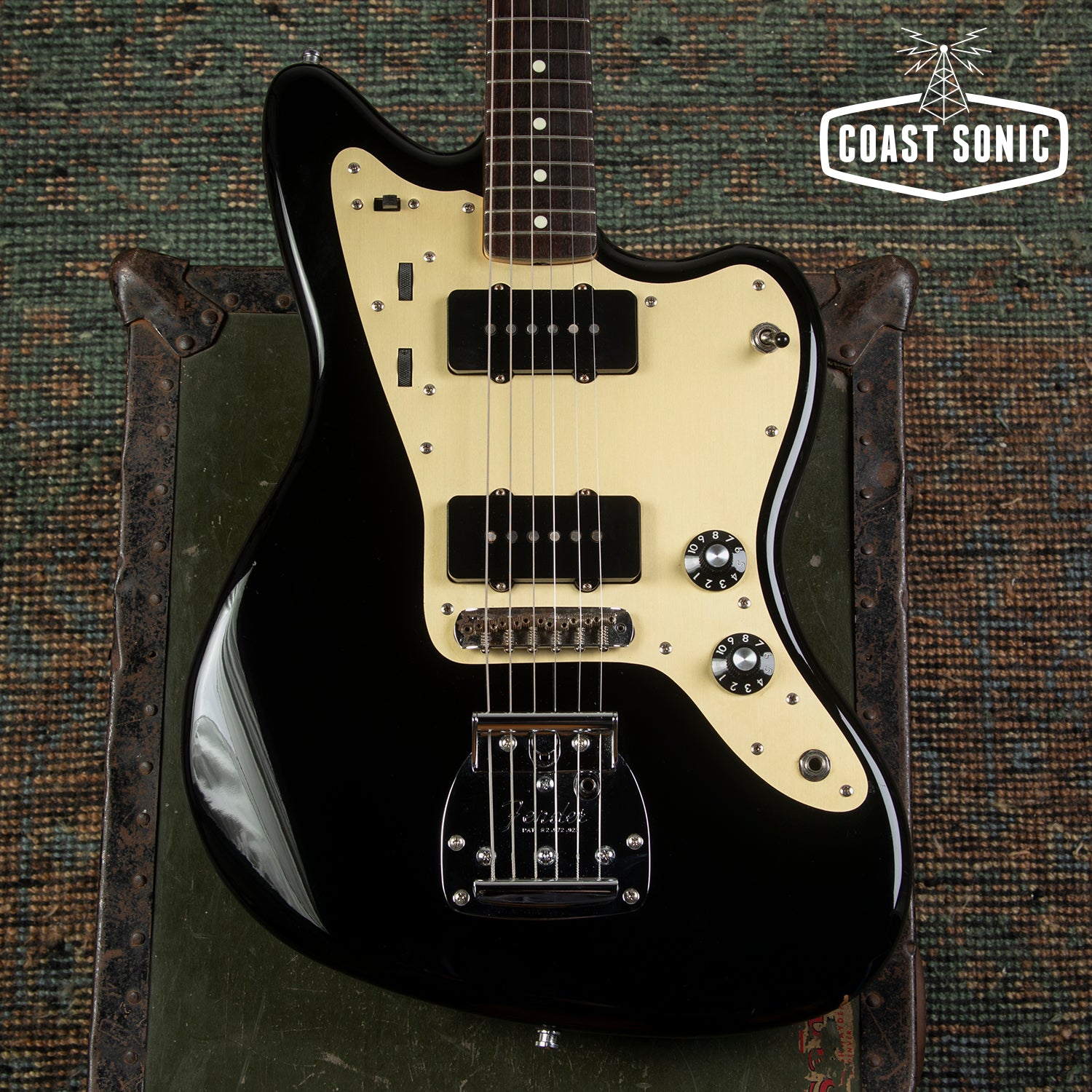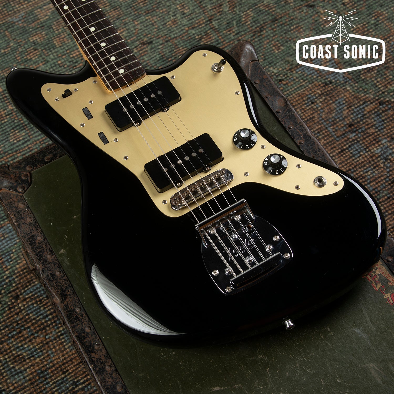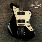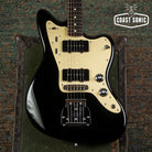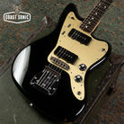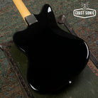 A Japan domestic market limited release; the Inoran Jazzmaster, a signature model for Japanese guitarist Inoran from the band Luna Sea. Alder body finished in piano black with an anodized gold pickguard and features factory USA Fender '65 Jazzmaster pickups.