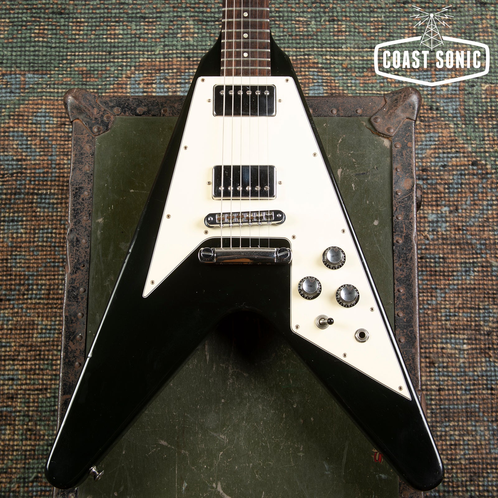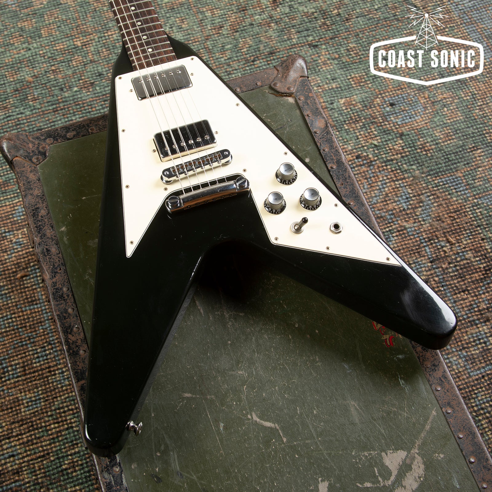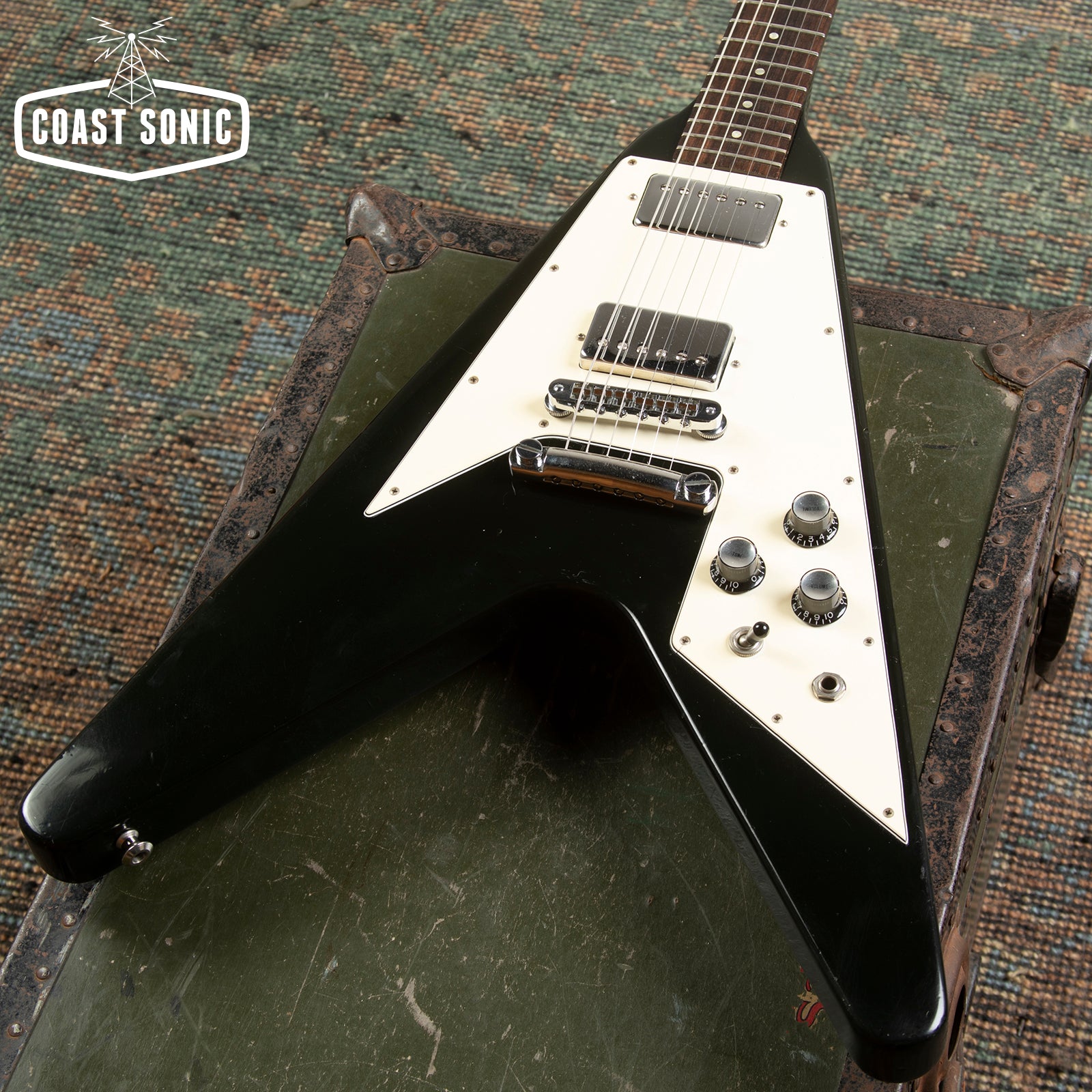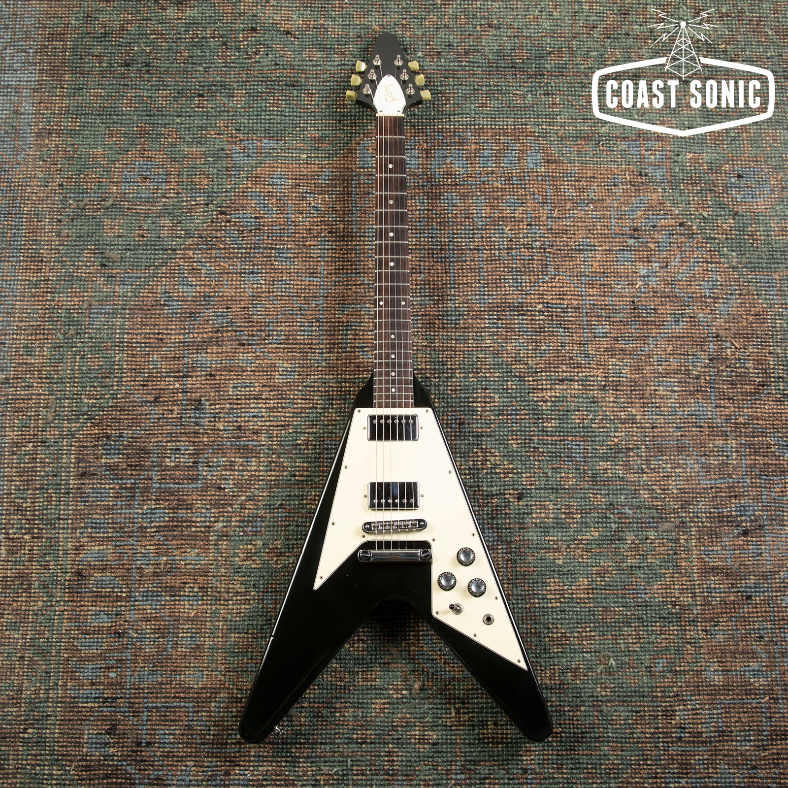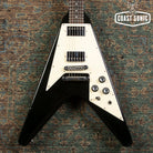 Here for your consideration is a 1989 Gibson Flying V '67 Reissue in very good condition! An absolute classic that plays like a dream! Nice classy black finish on this one. The body shows some general playwear, light surface marks, and scuffs but is otherwise in great shape with no major damage. Neck shows some very light surface marks but is otherwise very clean. Headstock shows some light wear around the edges, surface marks, and a minor ding on the lower edge near the high E string tuning machine (see photo). Fretboard is in great shape and frets have only light wear and plenty of life left in them. Hardware is in excellent condition for its age and in perfect working order. Original pots codes date to 1989 Electronics work perfectly with no scratchiness or issues. Pickups are the original Patent number sticker humbuckers and they sound amazing! Overall a stunning '67 V reissue that plays like a dream and very clean for its age. Has been fully inspected and set up by our tech. Includes non-original Epiphone hard case.