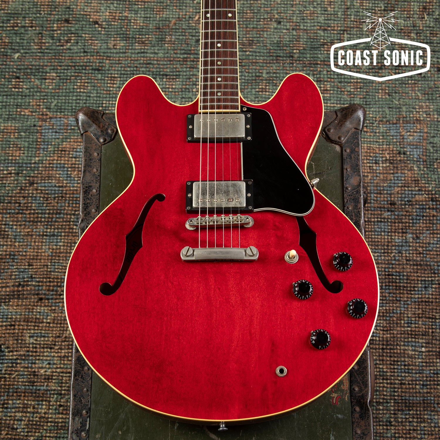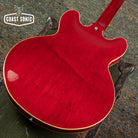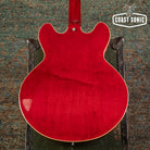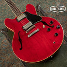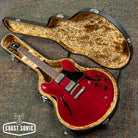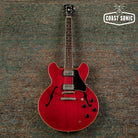 Overall in very good condition with a lovely Heritage Cherry finish. Body shows some very minor surface marks and general player but is otherwise very clean. Neck shows some light surface marks and has a finish crack where it meets the headstock. This is purely in the clear/surface coat - NOT a crack in the wood of the neck. Neck is otherwise fully stable, in excellent shape, and feels great. Headstock shows some light wear along the edges but is otherwise very clean. Fretboard is in excellent shape and frets show only some very minor wear and small divots starting to form but have no issues with buzzing/dead spots and plenty of life left. Hardware shows some light age and wear but is all perfectly functional and otherwise in great shape. Electronics have been thoroughly cleaned and work great. Features USA made CTS pots, Orange Drop capacitors, and Gibson USA humbuckers that sound fantastic. Overall a beautiful 335 Dot that plays great with a beautiful Cherry finish. Has been fully inspected and set up by our tech and ready for a new home. Includes hard case.