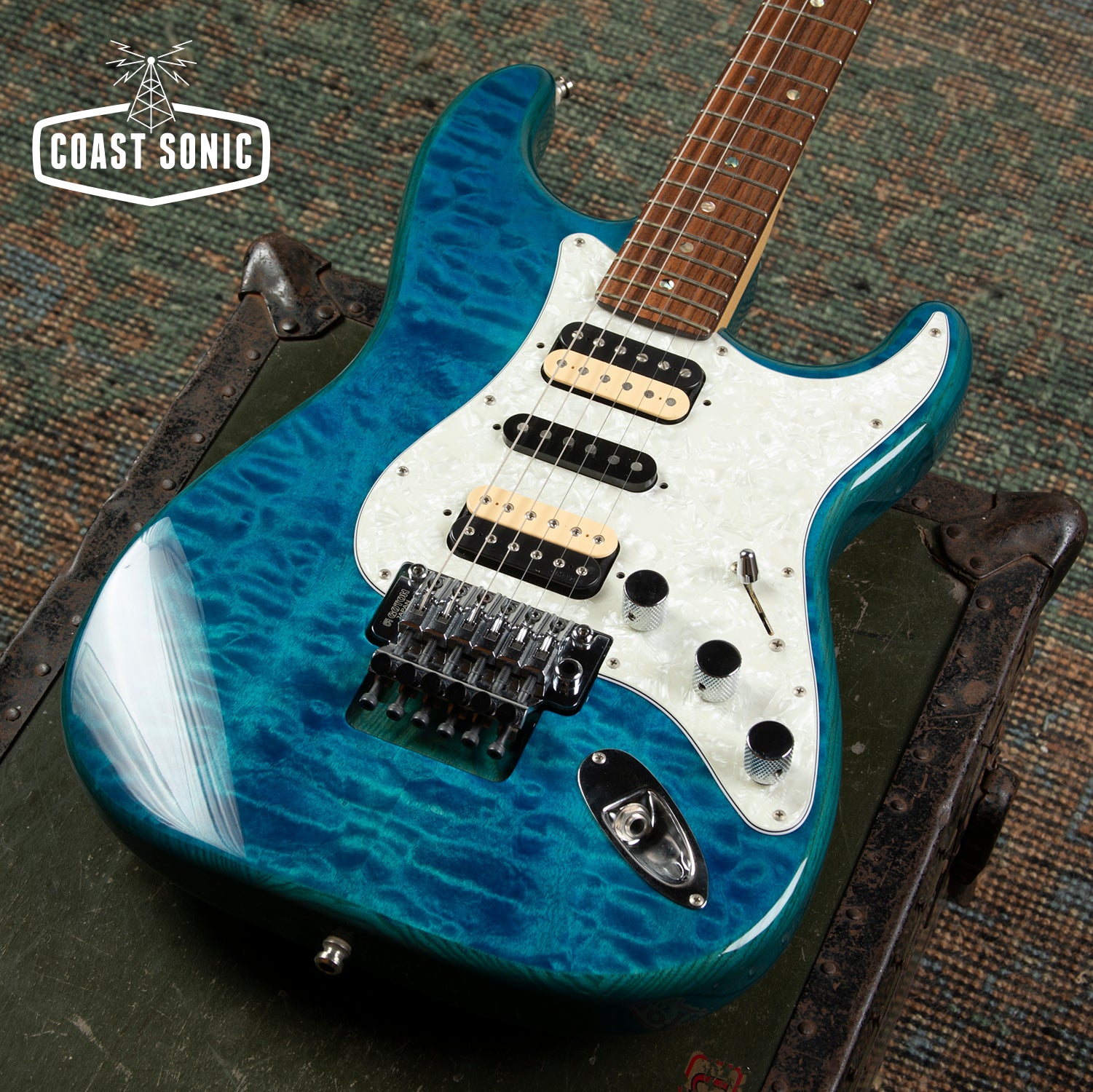 Here for your consideration is a 2019 MIJ Fender Michiya Haruhata Signature Stratocaster in excellent condition! This one appears to have not seen much use and is in excellent, nearly mint condition. Gorgeous Caribbean Blue transpaeent finish and a killer pickup set featuring a DiMarzio Air Norton humbucker in the neck, Fender Custom shop Texas Special in the middle, and a DiMarzio Fred Humbucker in the bridge, and a Gotoh double locking tremolo system. A stunning and versatile Stratocaster that plays amazing! Has been fully inspected and set up by our tech and ready for a new home. Includes gig bag.