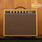 The front end is similar to the Half Pint, with extended headroom, lush spring reverb, and deep output modulating tremolo. The amplifier is hand wired onto a turret board with bespoke Soursound transformers and Jupiter capacitors standard.