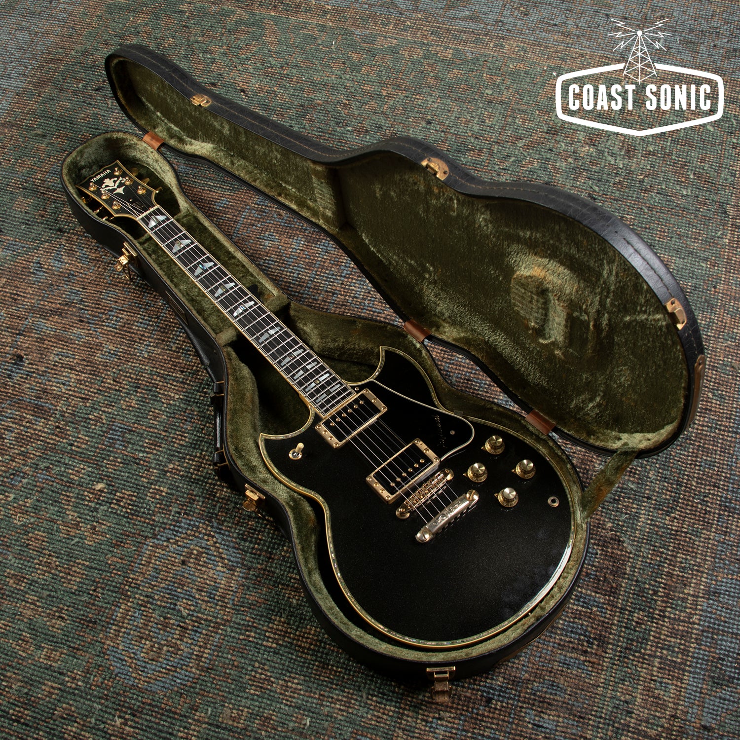 Here for your consideration we have a 1983 Yamaha Custom SG3000 Professional in Very good condition. This is the top of the line of the SG series guitars and this one feels and plays like it. Body shows some light surface marks and one very minor ding along the top edge but otherwise very clean with a stunning metallic black finish. Binding has started to pop out in a small area on the bottom side of the neck joint (see photo), But it does not affect playability in any way and can't be felt even when playing in the very high register. Binding is very solid besides that. Neck is in great shape with only one very small chip in the finish on the volute. Headstock is very clean with only light surface marks. Fretboard is in excellent condition and frets have very minimal wear with lots of life left. Hardware and tuning machines show signs of age and patina but is otherwise in good shape and all functions perfectly. Electronics work perfectly and the SG3000 Pickups sound incredible and with coil splitting is incredibly versatile. This guitar is in excellent shape for its age, plays like a dream and sounds fantastic. Freshly set up by our tech here at Coast Sonic and is ready for a new home. Original hard case included. Tolex on the original hard case has separated a bit (see photos), but the case itself is till in great shape.