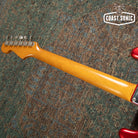 Here for your consideration is a 1989 MIJ Fender '62 Reissue Stratocaster ST62-55 in very good condition! This one has been modified with a Scalloped fretboard Ala Yngwie, Richie Blackmore, etc. We are not sure when or by who the mod was done but the work is nice. The body shows some various minor dings and some light surface marks but otherwise is very clean. Back of neck shows some very light surface marks but is otherwise very clean. Rear strap button has been relocated slightly above the original hole (see picture) Headstock shows a few minor dings and some light surface marks but is otherwise in good shape. Fretboard is overall in good condition and features what appears to be a DIY Scallop modification. The work is decent and the neck feels very nice and plays well. Hardware shows some age, patina, and rust in some spots but is overall in very good working condition. Electronics work great and features a nice set of vintage style low output Strat pickups that sound great. Overall a very nice Strat that plays like butter with a really cool and fun scalloped Rosewood fretboard. Has been fully inspected and set up by our tech and ready for a new home. Includes gig bag.