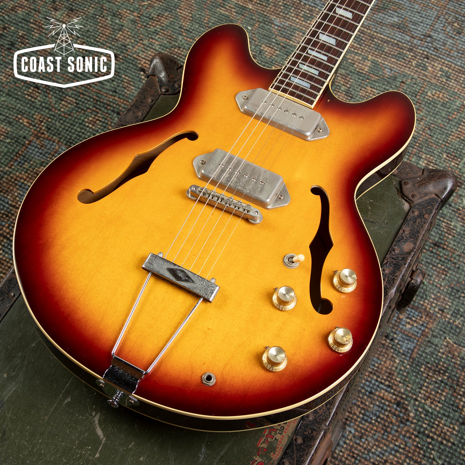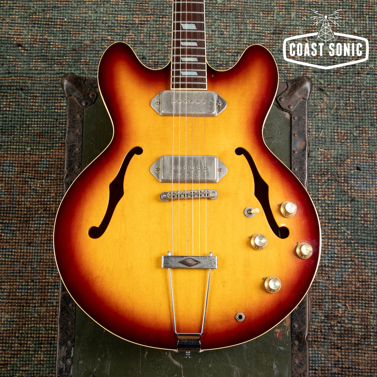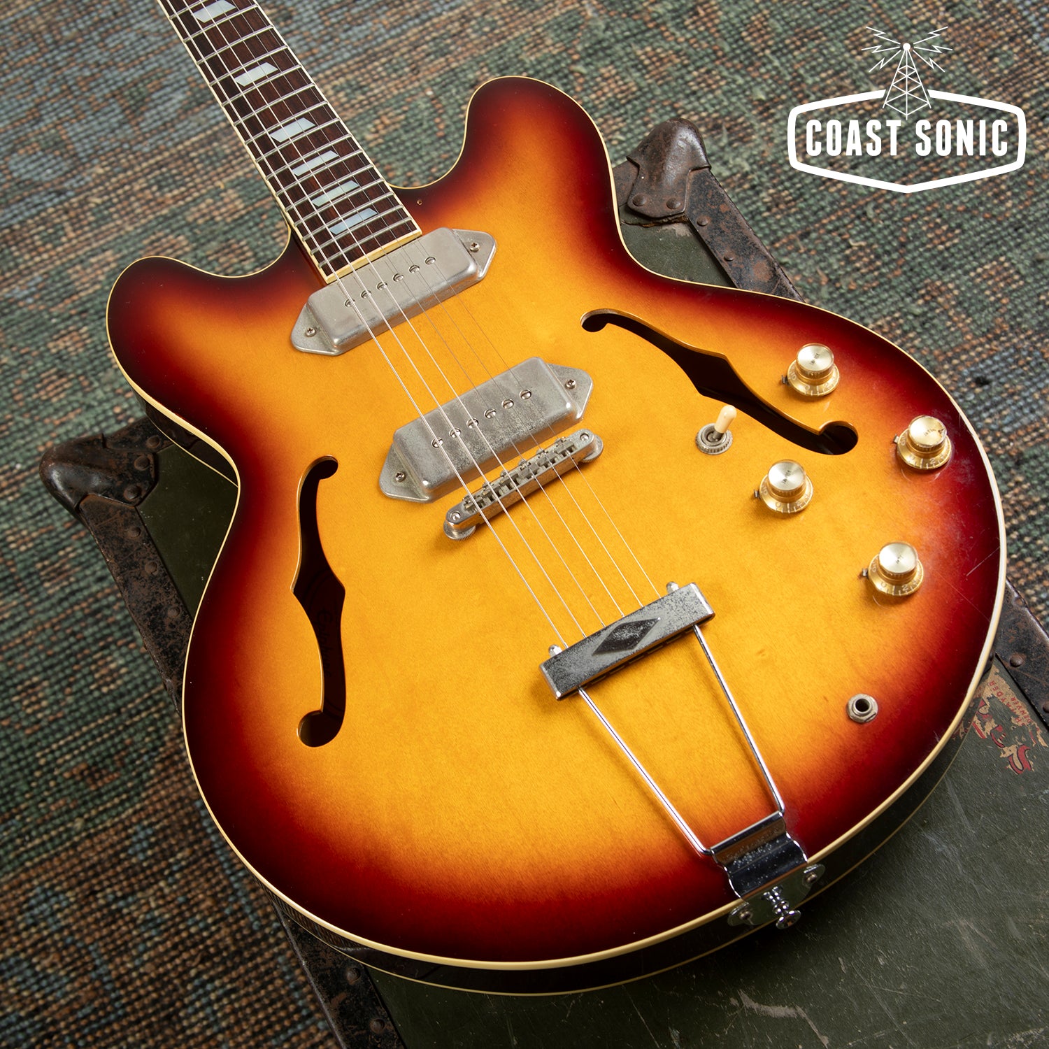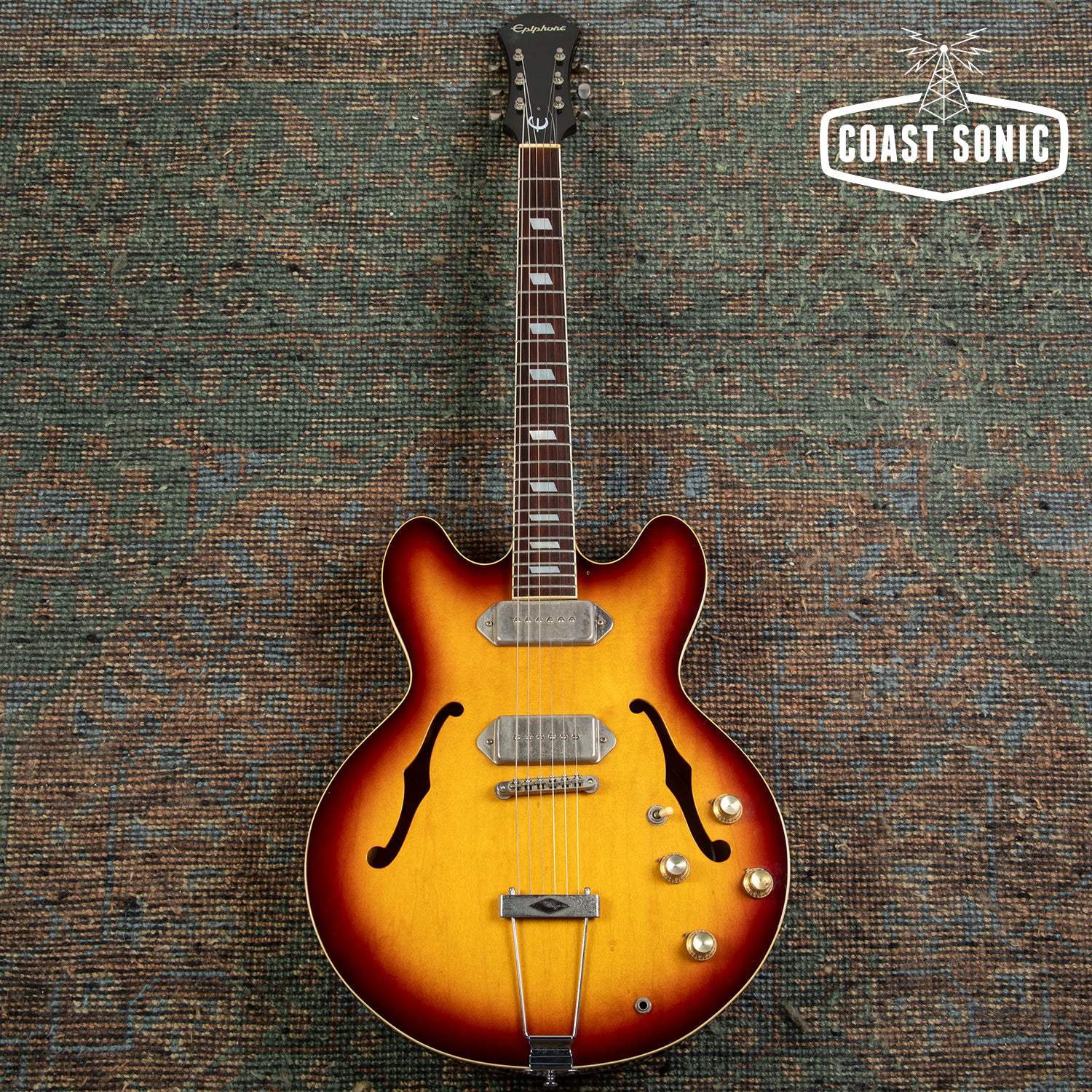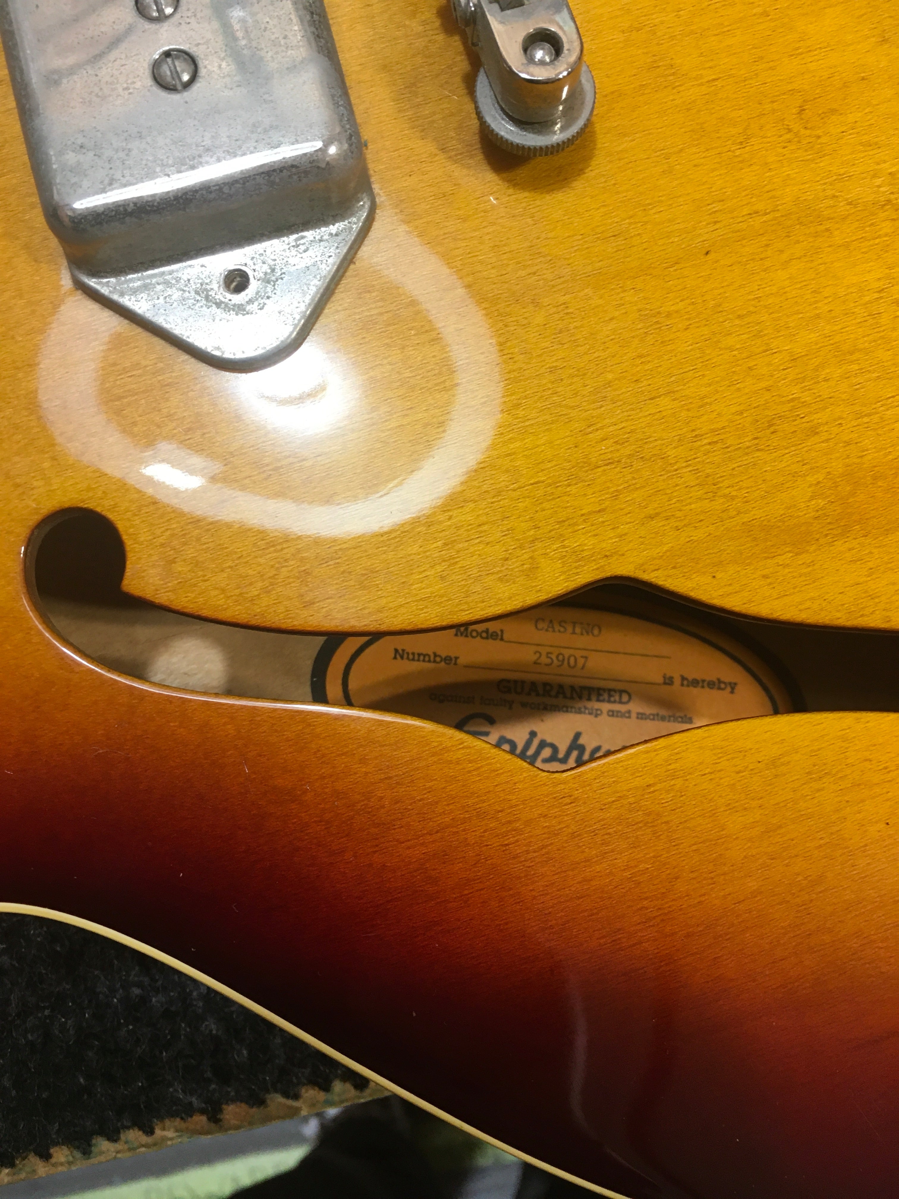 Here for your consideration is a 1992 Japanese made, Pre-Elitist series Epiphone Casino in very good condition! Gorgeous finish on this one and plays great! Body shows some finish marks on the back side (see photos), but the top is clean and overall in great shape with no major damage of any sort. This one came to us with no pick guard but the holes are there so one could be easily put on. Neck is in excellent shape. Neck shows some light wear and some scratches in the finish on the front side but is otherwise in great condition. Fretboard is in excellent shape. Frets show some wear but have no issues with buzzing or dead spots. Hardware shows a decent amount of patina and age but all functions perfectly. Electronics work perfectly and pickups sound fantastic! A classic Casino that feels great, and has one of the nicest finishes we've seen! Has been fully inspected and set up by our tech and ready for a new home.