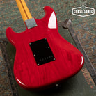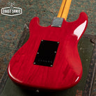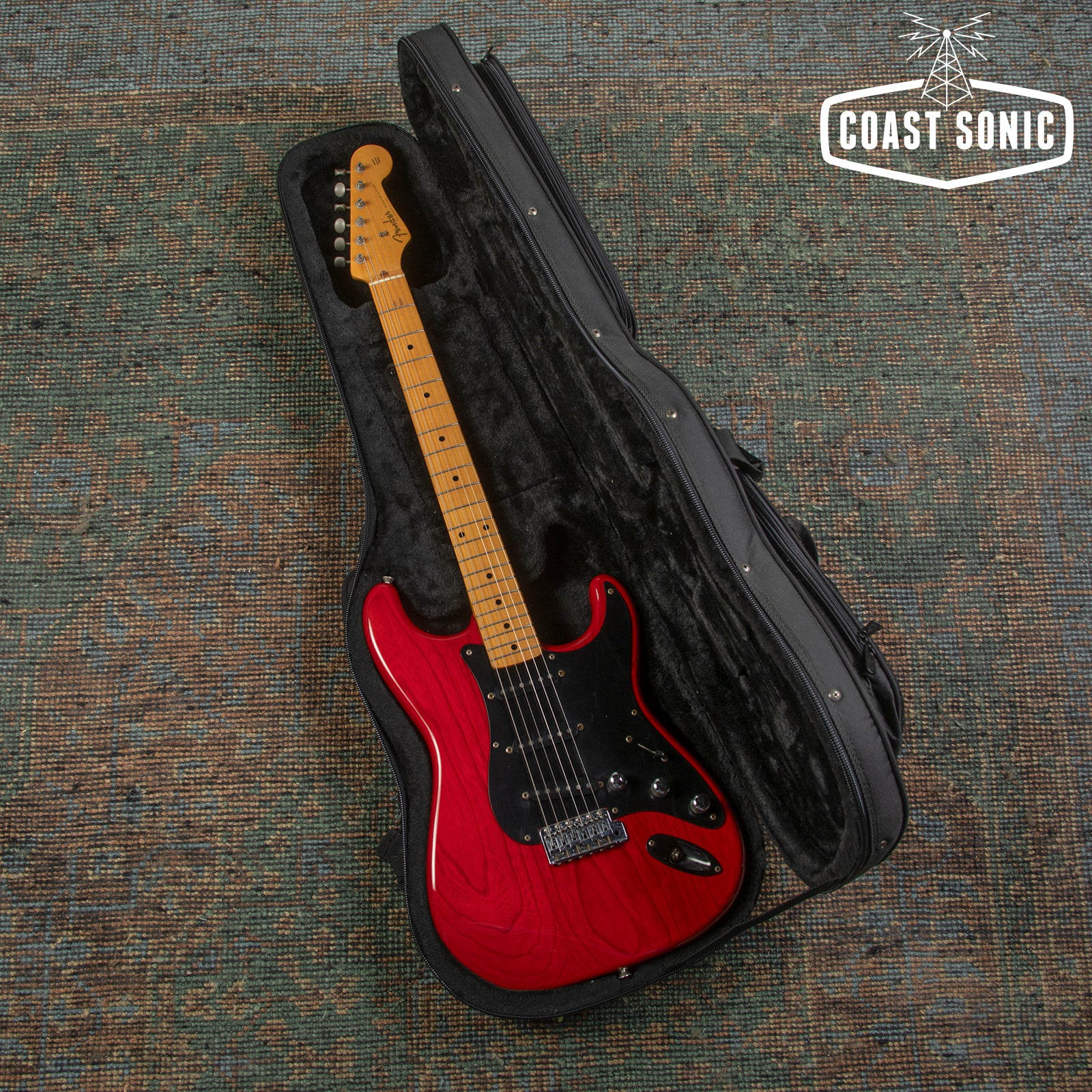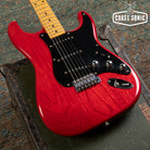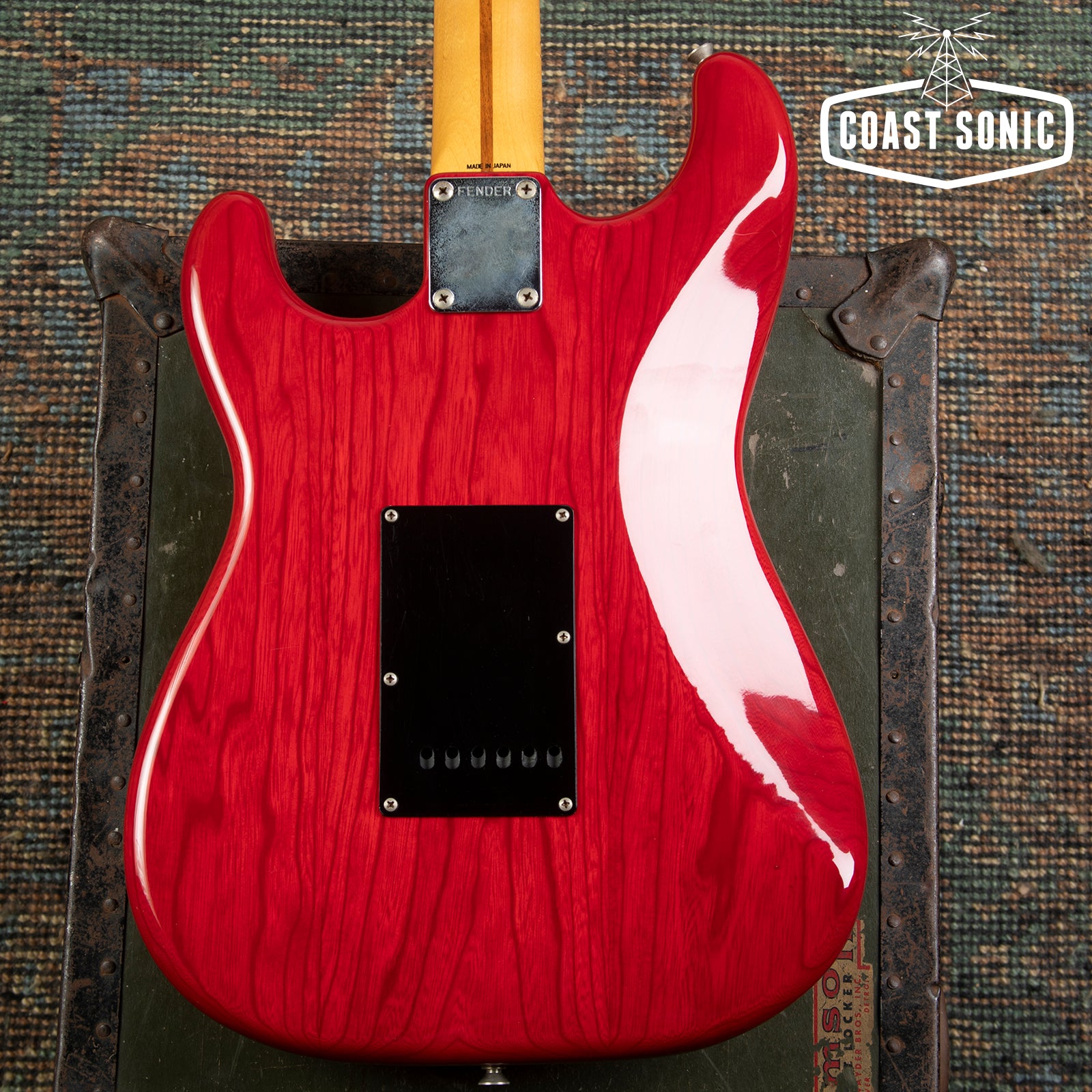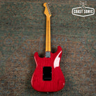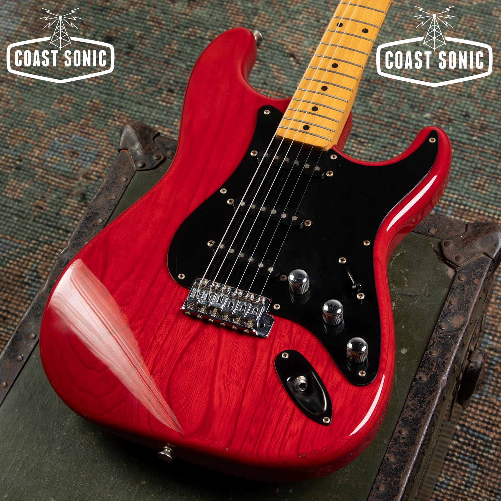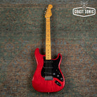 Here for your consideration is a 1985 MIJ Fender Order Made '57 Reissue Stratocaster in very good condition! A custom made Guitar from Fender Japan's Order Made program; essentially like a custom shop from Fender Japan at the time where you could order non-catalog finishes and features. This one features an Ash body with a transparent red stain finish, chrome telecaster style knobs, black output jack plate, and a single ply black pickguard. In overall very clean condition for a 40 year old guitar. Body shows some light surface marks and pick marks but is otherwise clean. Neck is clean with no notable blemishes or issues. Headstock shows some light wear along the edges but is overall very clean with no major damage. Fretboard shows some wear on the first fret and some along the edges but otherwise is in very good condition. Frets show some light wear but have no issues and plenty of life left. Hardware shows signs of age and pitting (on bridge and saddles) but is otherwise in very good working condition. Electronics work great and features a vintage style 3-way pickup selector switch. Could easily be replaced for 5-way operation. Features a a set of USA Texas Special pickups. A one of a kind custom shop quality Strat that plays and looks amazing. Has been fully inspected and set up by our tech and ready for a new home. Includes SKB hybrid soft/hard case.