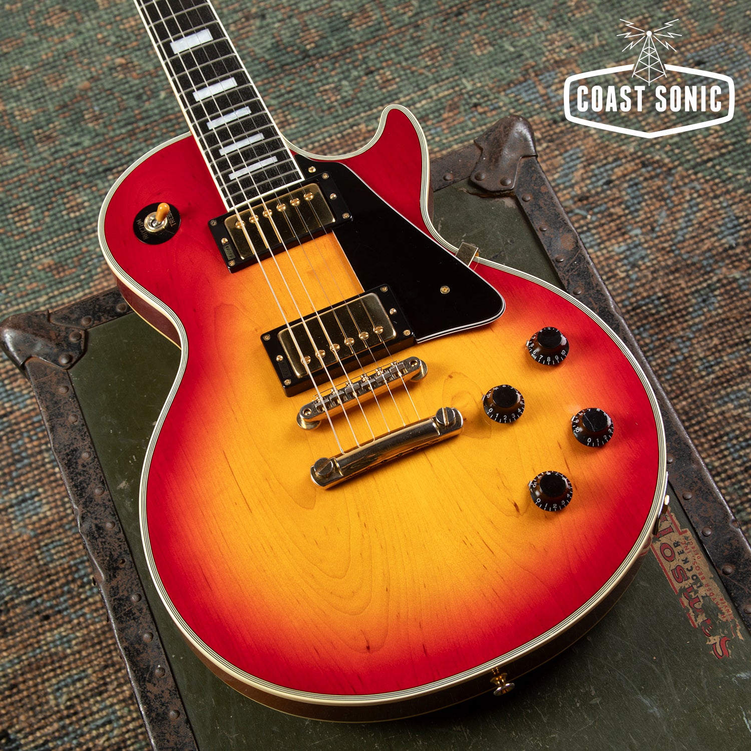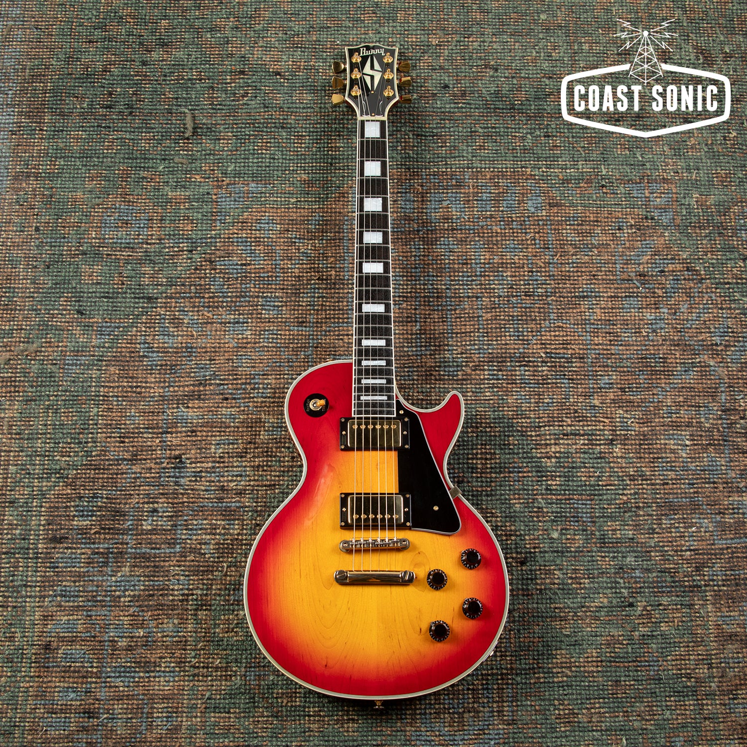 Here for your consideration is a 1991 Burny RLC-70 Les Paul Custom in excellent condition! Featuring a beautiful Cherry Burst finish, Gold hardware, Pearled block inlays, real bone nut, and a set of VH-1 humbuckers. Extremely clean throughout. This seems to have seen little use during its 35 years of life. A very comfortable neck with a nice 60's Gibson style "C" profile. Fretboard is super clean with nice grain patterns. Frets show almost no wear whatsoever. Gold hardware remains in excellent condition. No dings/dents or deep scratches. Frets show only the lightest signs of use. Overall an incredibly clean, great feeling LP Custom from one of Japan's best. Has been fully inspected and set up by our tech and ready for a new home. Includes gig bag.
