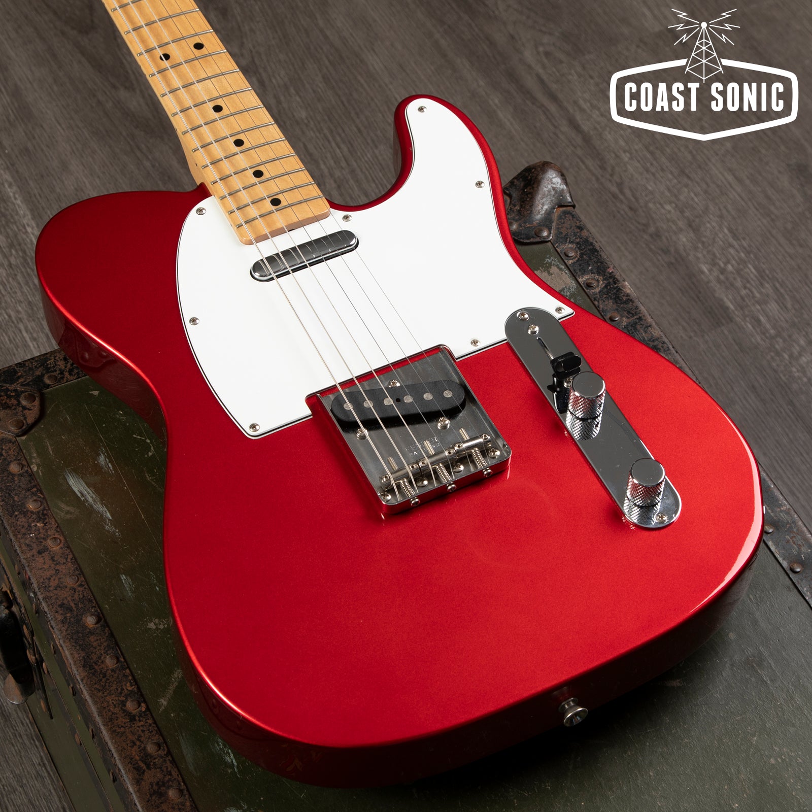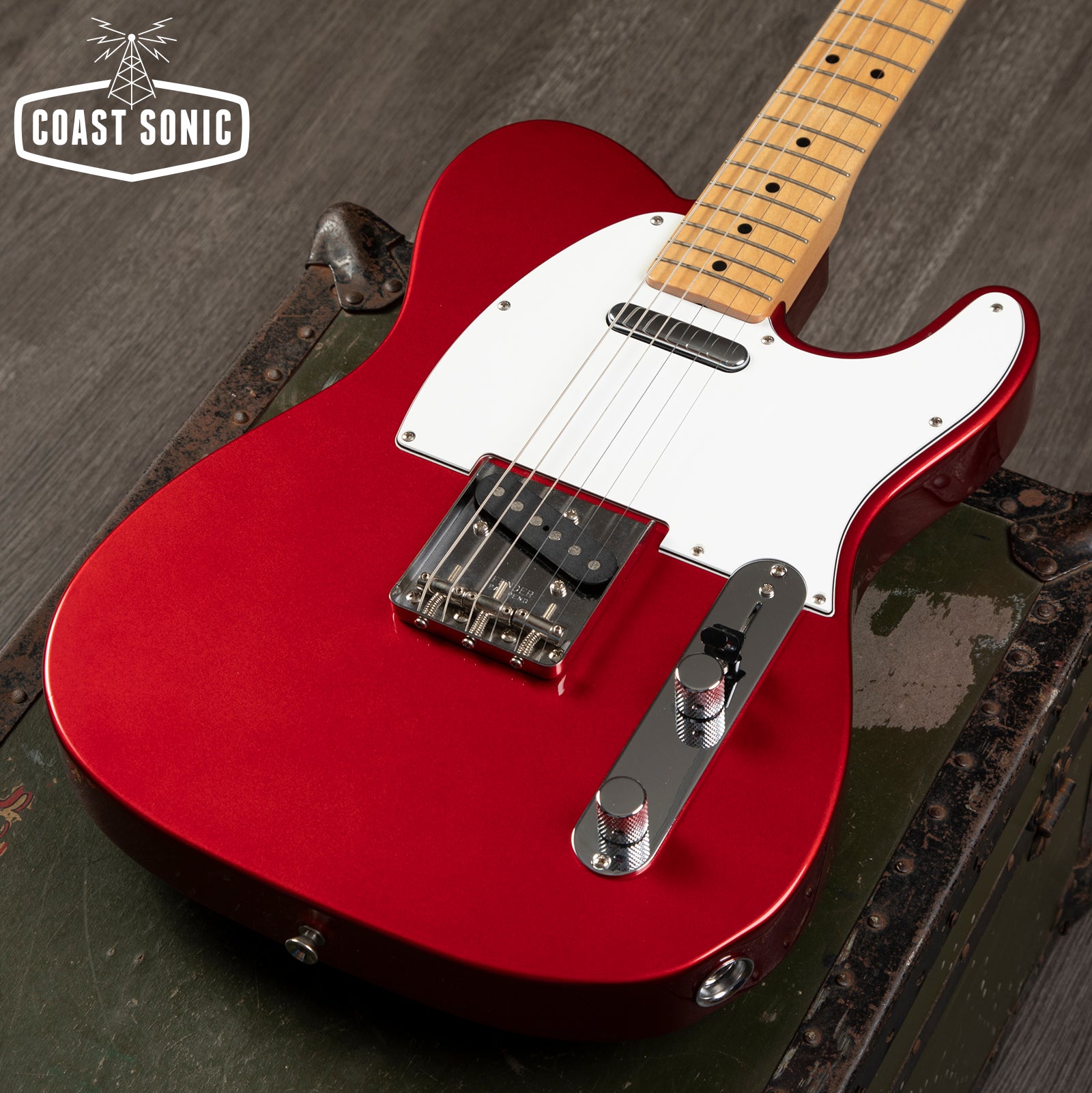 A Fender Japan Exclusive Classic 70s Telecaster in a beautiful Candy Apple Red finish. Features an ash body, 70's Fender headstock logo, Gotoh tuners, 3 ply guard. Excellent condition throughout, seems to have gone mostly unplayed. Frets show only very light use, otherwise the guitar is in near mint condition throughout showing only the lightest of any pickmarks/scuffing. No dings/dents/chips or deep scratches.
